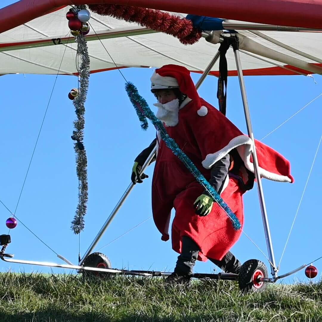 C’est grâce à l’inclinaison de la pente ainsi qu’à la foulée de nos jambes, que le couple pilote et passager obtiendra la vitesse-air nécessaire au décollage (environ 25 à 30 km/h). Une fois cette vitesse atteinte, le deltaplane
